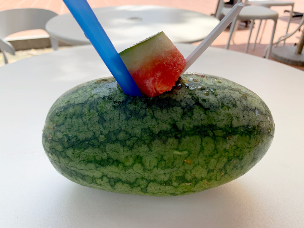 スイカというよりウリっぽい形。味はスイカでした。甘さと冷たさが沁みる。
