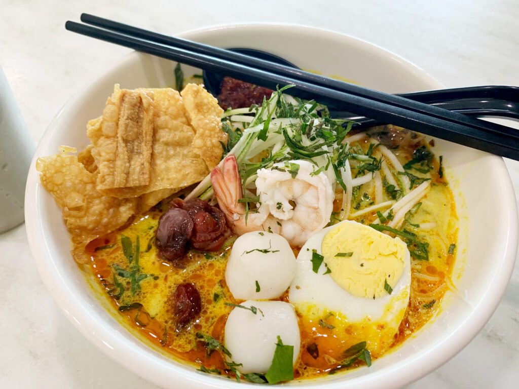 シンガポールかマレーシアのどちらかでラクサを食べてみたかったのです。加えてニョニャ料理(プラナカン料理)も食べてみたかったので、この二つが同時に味わえるニョニャラクサを食べました。
